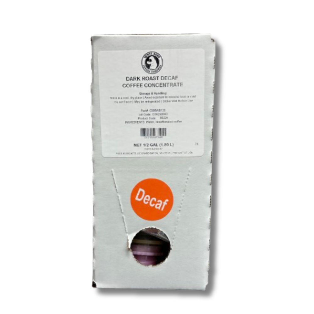 Premium decaffeinated dark roast coffee formulated as a 30:1 concentrate, with a standard Scholle 1910 connector. Engineered for liquid coffee machines (like Bunn LCA, Newco LCD, etc.), this Bag-in-Box format delivers full-bodied dark roast flavor sans caffeine, with unmatched convenience and consistency.